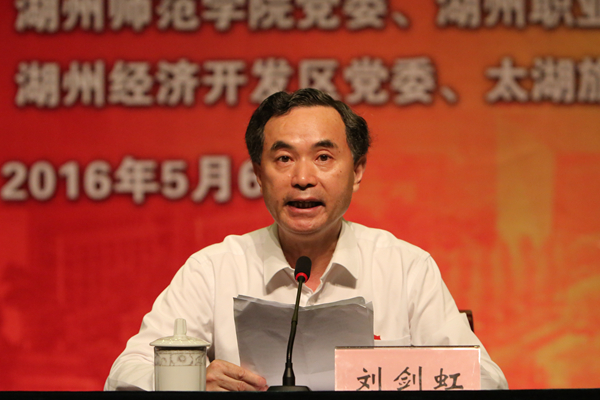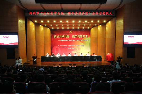 5月6日,湖州市“结对共学共做,携手共建共进”活动启动仪式在我校举行。市委常委、组织部长干武东,湖州职院党委副书记丁根林,吴兴区委常委、组织部长朱剑梁,湖州职院党委委员、组织部长沈楚,湖州经济技术开发区管委会副主任郜世通,太湖旅游度假区管委会副书记、副主任沈建军,我校党委书记刘剑虹,副书记蒋云良,党委委员、组织部长何小青出席。市委组织部、吴兴区委组织部、湖州经济技术开发区、太湖旅游度假区和湖州师院、湖州职院相关职能部门的负责人,有关乡镇、街道负责人,168个结对的支部书记、党员代表及所在党组织的领导参加。启动仪式由何小青主持。