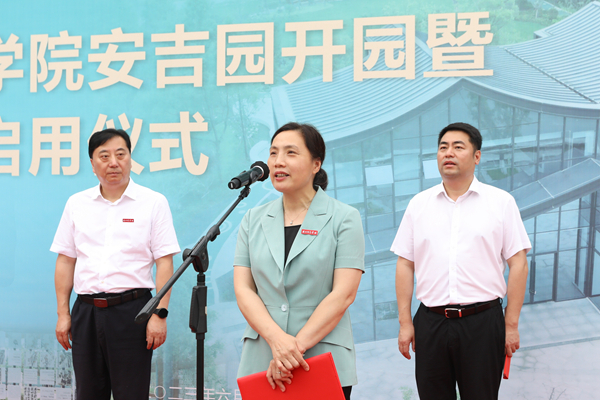 许慧霞表示,“安吉园”始建于2009年,是我校“校园十大景观”之一,学校将其作为“君子之风”传承发扬的基地和德育美育的重要场所。如今,在安吉县委县政府的大力支持下,学校将安吉园改造提升并新建了校友中心。她希望,学校上下能更好地发挥这一重要文化景观的作用,聚焦环境育人,努力构建师生发展命运共同体,用好校园景观、讲好湖师故事、做好育人文章,为党育人、为国育才;聚焦校友服务,努力构建学校与校友命运共同体,校友与母校紧密相连,要加强校友中心建设,使其成为联系校友、服务校友的重要平台;聚焦校地共建,努力打造城市与大学发展命运共同体,与安吉县同频共振、同向发力,共同为高等教育事业和经济社会发展各方面作出贡献,以高水平打造“3+1”平台为载体,开启校地合作新篇章,为学校发展和“六个新湖州”建设助力。