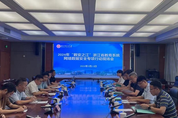 9月13日,“数安之江”浙江省教育系统网络数据安全专项行动检查组来我校开展数据安全现场评估,并举行现场会。校党委副书记丁敢真出席会议并致辞,浙江省教育技术中心党总支委员、副主任於晓东,评估检查专家组、省委网信办干部、湖州片区4所高校代表、学校信息技术中心相关负责人和数据安全技术骨干参加会议。