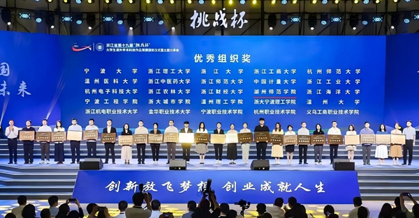 近日,由共青团浙江省委、浙江省教育厅、浙江省社会科学院、浙江省科学技术协会、浙江省学生联合会主办的浙江省第十九届“挑战杯”大学生课外学术科技作品竞赛在浙江中医药大学落下帷幕。我校共获得金奖4项、银奖9项、铜奖14项,学校首获优秀组织奖,主体赛金奖数量突破历史新高。